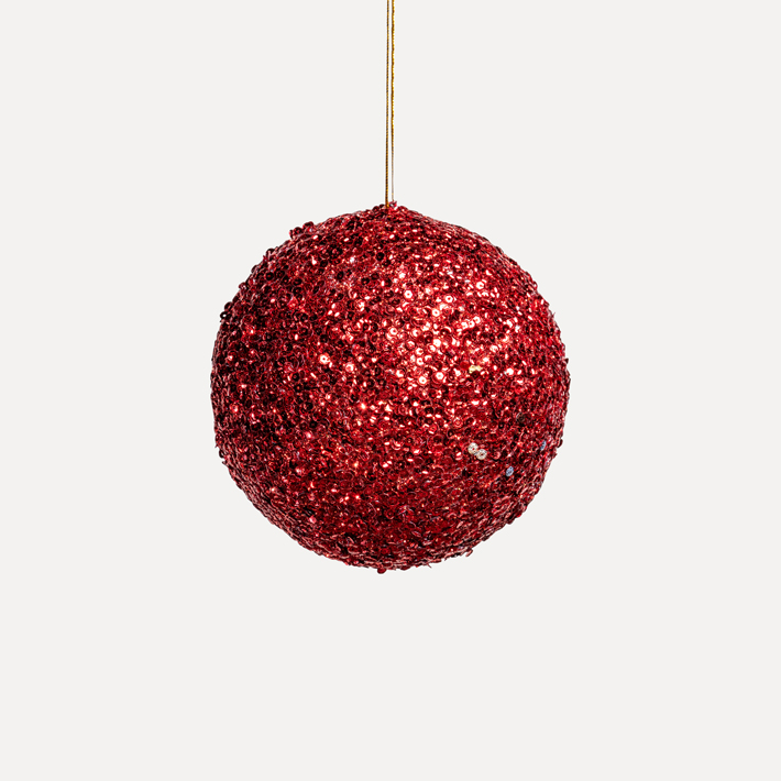 Легкий шар на основе из пенопласта создает дополнительное мерцание в оформлении благодаря множеству пайеток. Классический красный оттенок подходит для элегантных и нестандартных декоративных решений. Сочетается с аналогичными шарами разных размеров и другими изделиями бренда.
