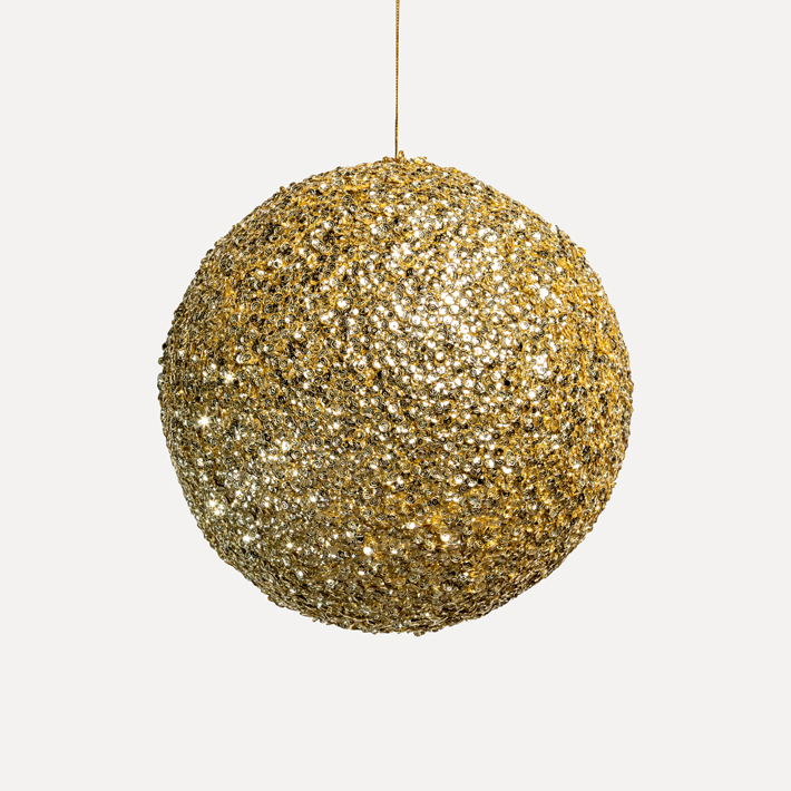 Легкий шар на основе из пенопласта создает дополнительное мерцание в оформлении благодаря множеству пайеток. Благородный оттенок золота подходит для элегантного и классического декора, также станет основой для нестандартных решений. Сочетается с аналогичными шарами разных размеров и другими изделиями бренда.
