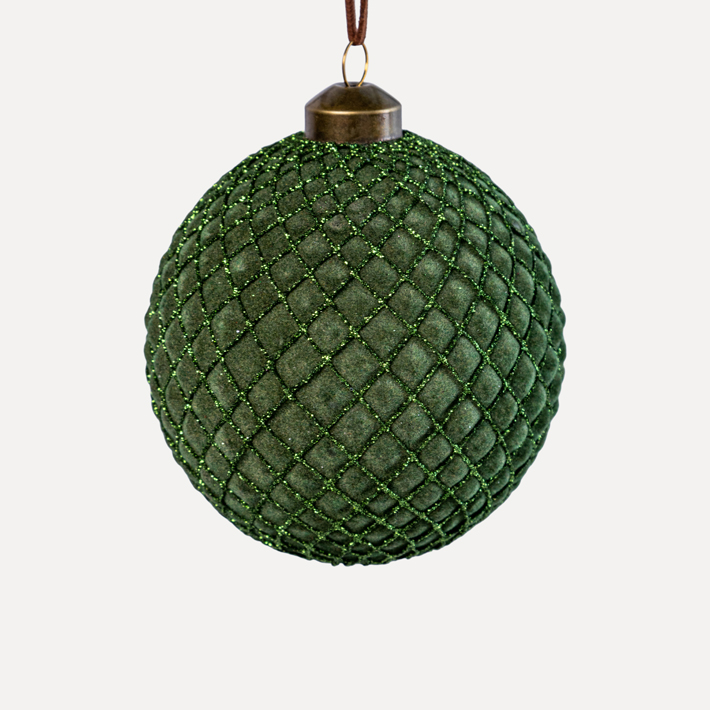Шар D10 см, стекло, флок, темно-зеленый