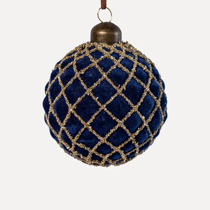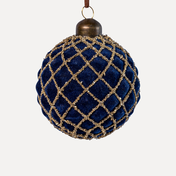 Шар D8 см, стекло, флок, синий, золотой