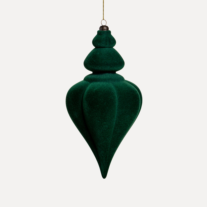 Фигурный подвес из флока в насыщенном зеленом оттенке с бархатистой фактурой отлично подходит для классических и элегантных оформлений. Металлический кап, подобранный специально для изделия, придает ему утонченный вид.