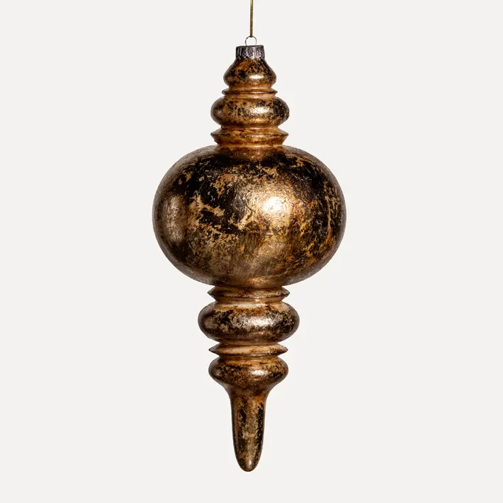 Фигурный подвес в золотом цвете с имитацией фактуры состаренного лакированного дерева дополняет капсулу изделий из пластика. Подходит для оформления пышных и высотных елей, витрин, создания подвесных каскадов. Эффектно выглядит в многоуровневых и выносных композициях на ветвях.
