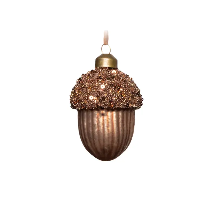 Подвес ЖЕЛУДЬ H8 см, стекло, зеленый, коричневый