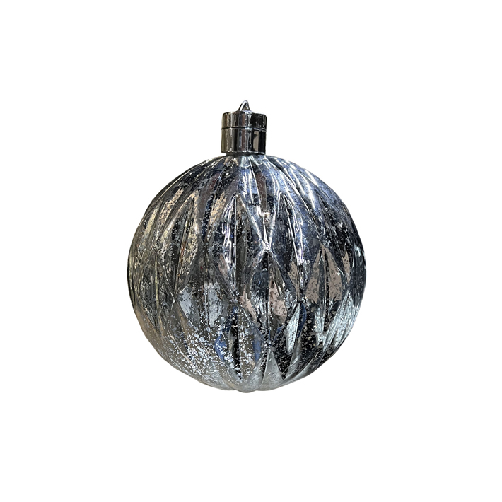 Небьющийся шар с эффектом винтажной амальгамы, который подсвечивается внутренней светодиодной гирляндой.