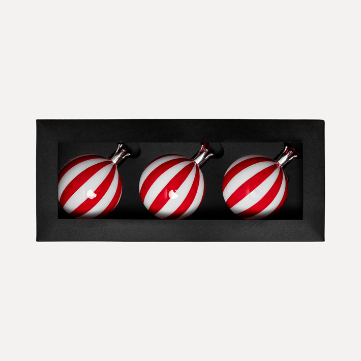 Шары в наборе D10 см, 3шт, стекло, красный, белый