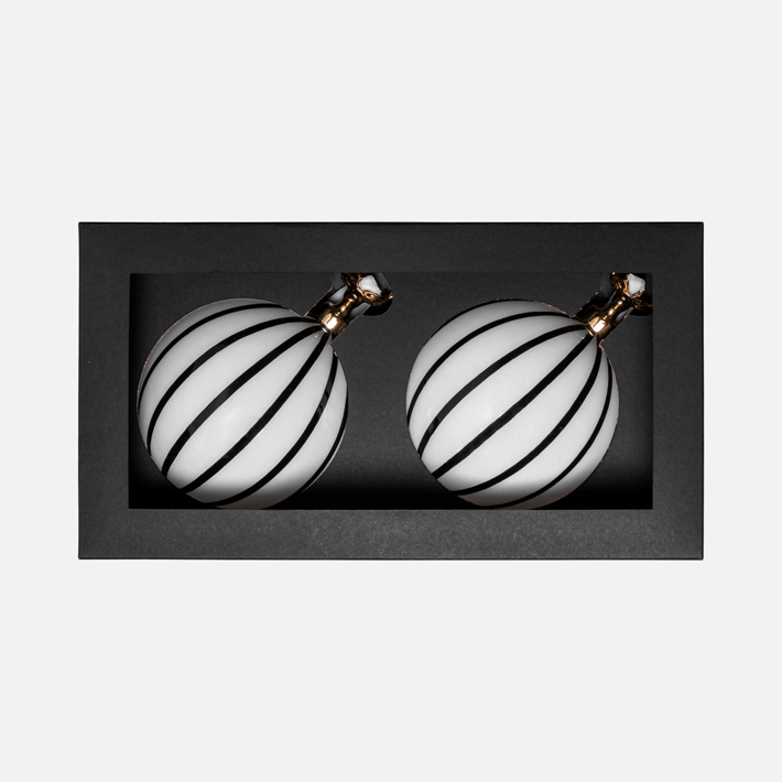 Шары с контрастным дизайном станут выразительным акцентом в оформлении и подойдут для монохромного декора и нестандартных решений. Средний диаметр изделий подходит для декора елей и интерьерных композиций. Шары довольно увесистые, что стоит учитывать при подборе украшений и создании оформлений.