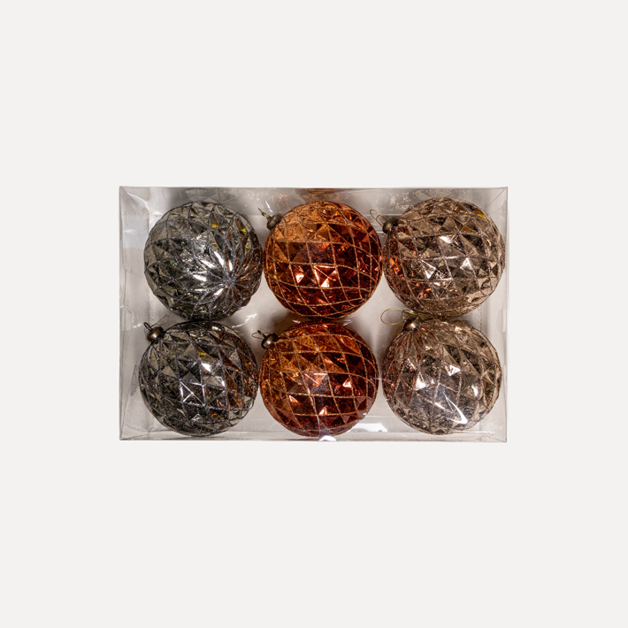 Шары в наборе D15 см, 6 шт, пластик, медный, золотой, серебряный