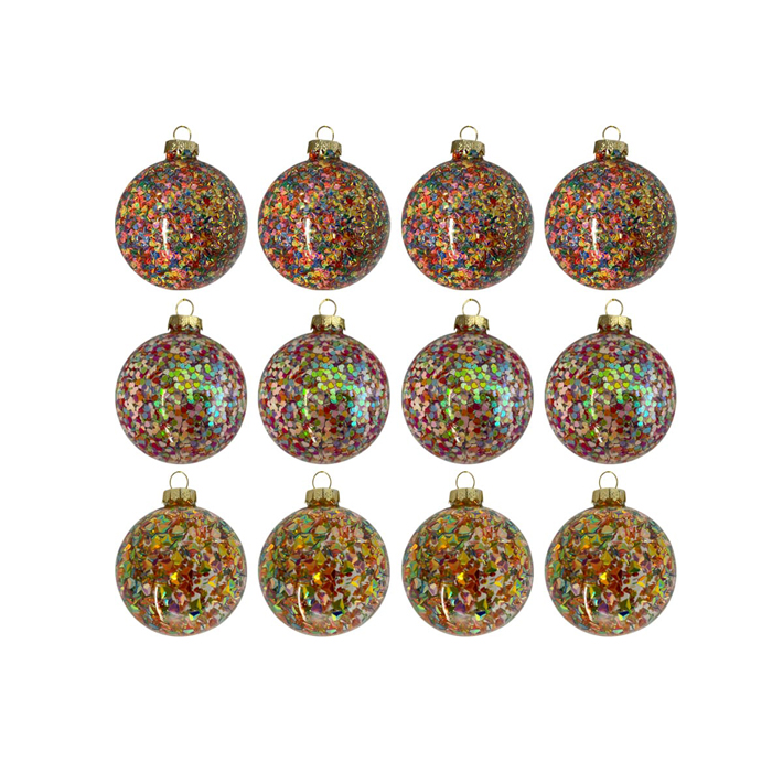 Шары в наборе D8 см, 12 шт, глиттер, стекло, мультиколор
