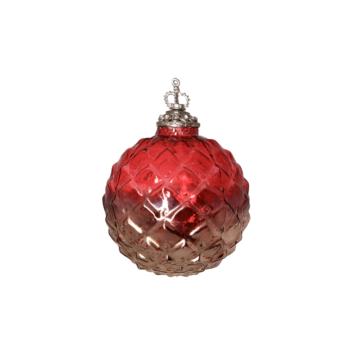 Шар D10 см, стекло, красный, серебряный