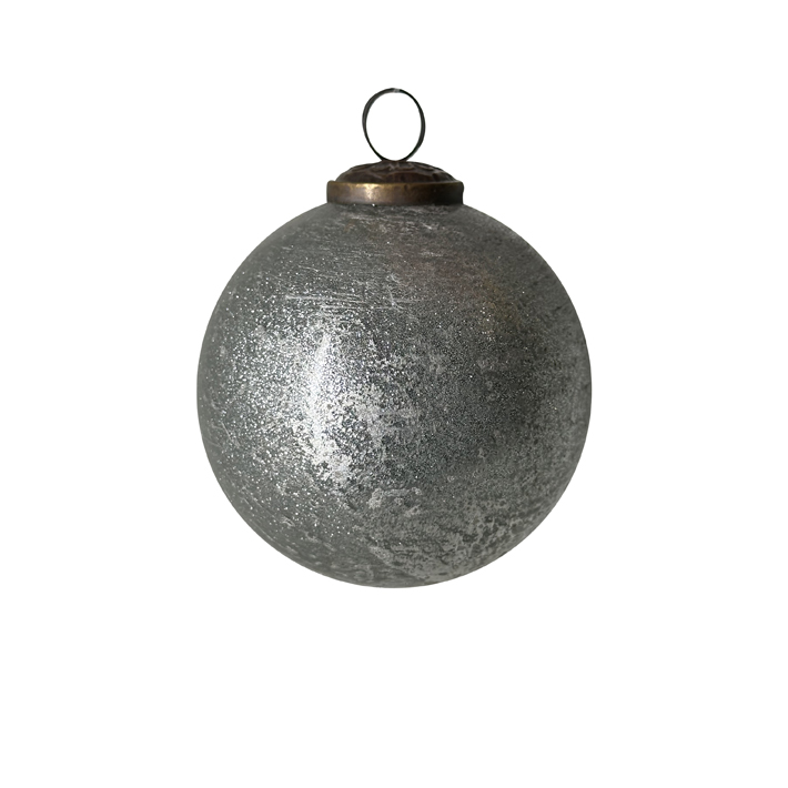Шар D10 см с блёстками, стекло, серебряный