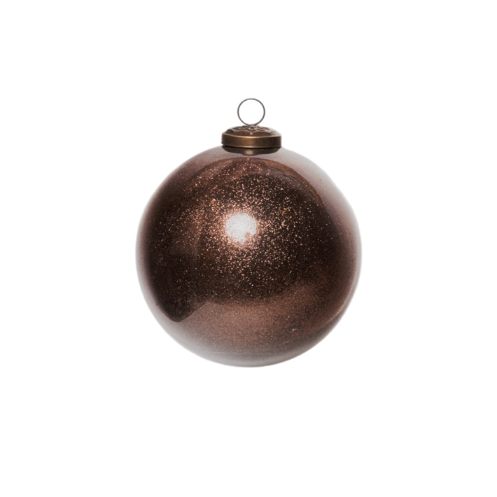 Шар с блёстками D12 см, стекло, коричневый