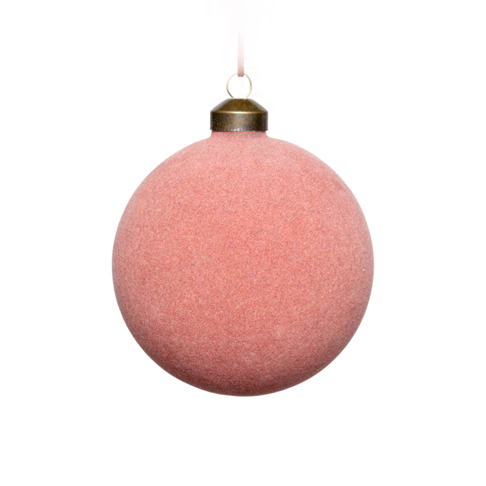 Шар D10 см, стекло, флок, розовый