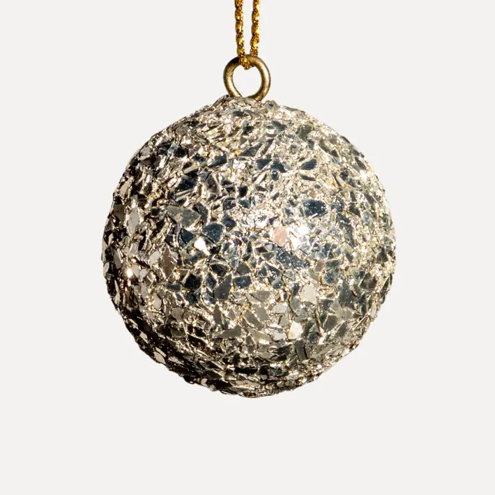 Инкрустация стклярусом создает эффект застывших капель и неоднородную фактуру, которая придает композиции дополнительное сияние. Небольшой размер украшения подходит для декора компактных хвойных композиций, венков и гирлянд. Классический оттенок шампани подходит для разнообразных декоративных и цветовых решений. Сочетается с аналогичными шарами разных размеров и другими изделиями бренда.