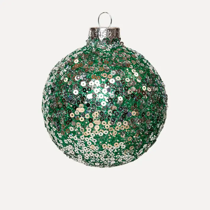 Шар с пайетками D8 см, стекло, зелёный