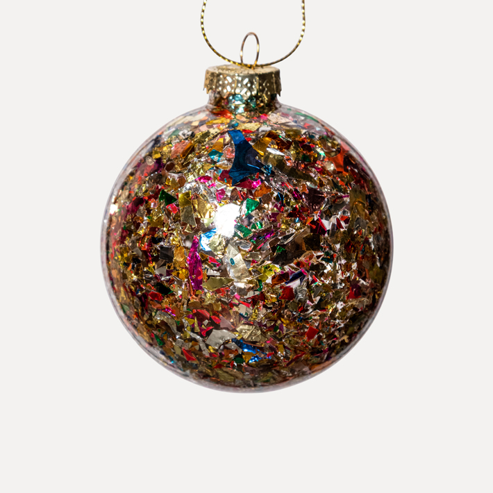 Шар с пайетками D8 см, стекло, мультиколор