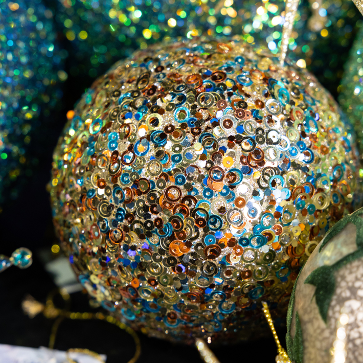 Шар D10 см с пайетками, пенопласт, бирюзово-золотой, мультиколор