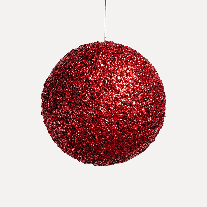 Легкий шар на основе из пенопласта создает дополнительное мерцание в оформлении благодаря множеству пайеток. Классический красный оттенок подходит для элегантных и нестандартных декоративных решений. Сочетается с аналогичными шарами разных размеров и другими изделиями бренда.