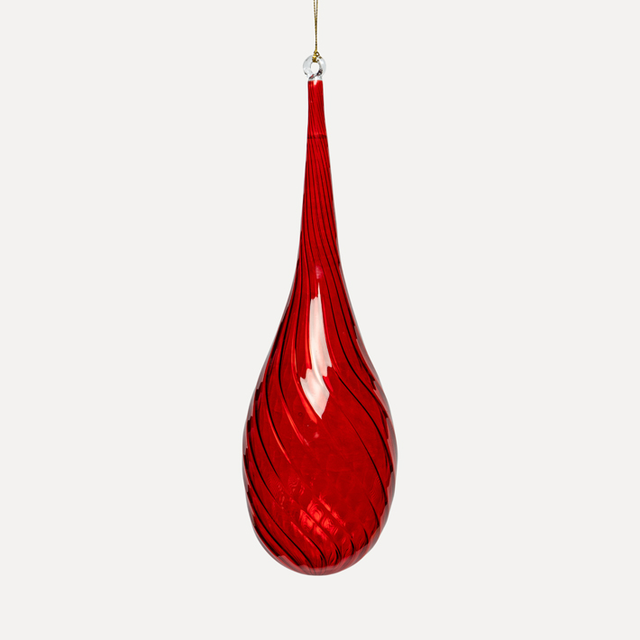 Подвес ручной работы КАПЛЯ 6x18 см, стекло, красный