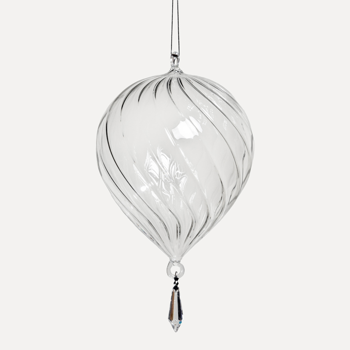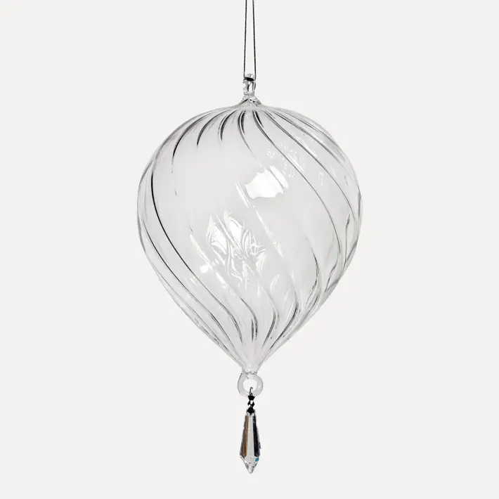 Подвес ручной работы из стекла, созданный по авторским эскизам BEST DECOR PLACE. Каждое украшение создается индивидуально, что позволяет получить уникальную форму, грани которой пропускают лучи света, создавая выразительный декоративный эффект. Подвес украшен прозрачным кристаллом, усиливающим сияние украшения в лучах софитов и гирлянд.