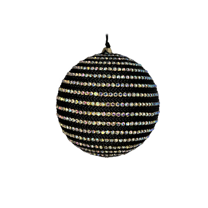 Шар D12 см с кристаллами и плетеным шнуром, пластик, стекло, черный, радужный