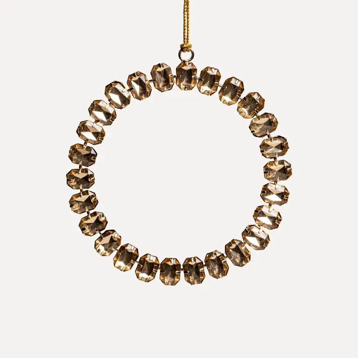Подвес в форме кольца — новое прочтение узнаваемого изделия из ассортимента BEST DECOR PLACE. Изделие изготовлено из металла в цвете золота и стеклянных кристаллов формы «Изумруд». Ювелирная огранка подчеркивает глубину цвета камней и усиливает их светоотражение, а золотистая основа добавляет теплоту оттенкам.