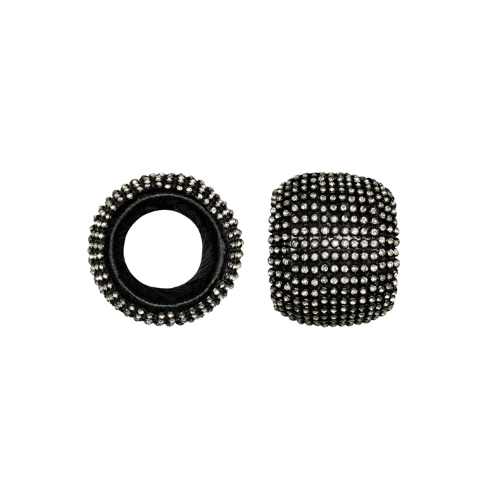 Кольца для салфеток в наборе с кристаллами D5 см, 2 шт, пластик, чёрный, серебряный