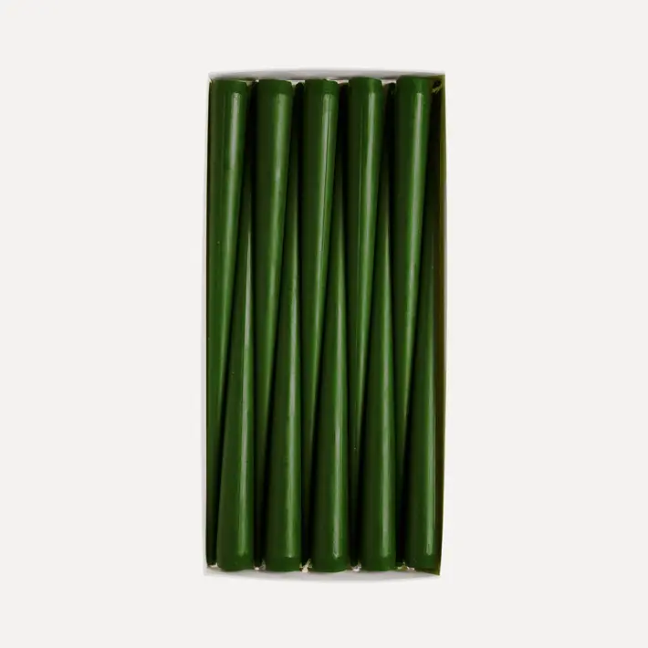 Набор конусных свечей в коробке, 29 см, 10 шт, воск, темно-зеленый