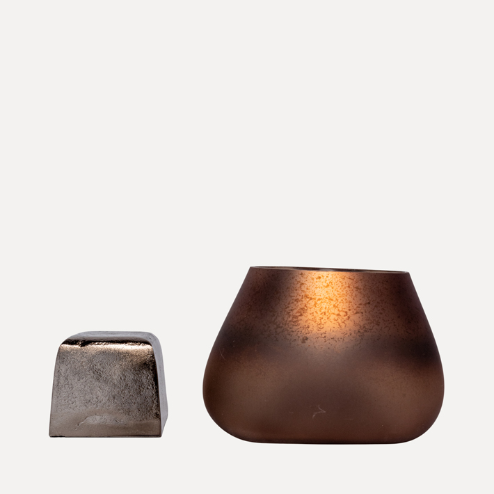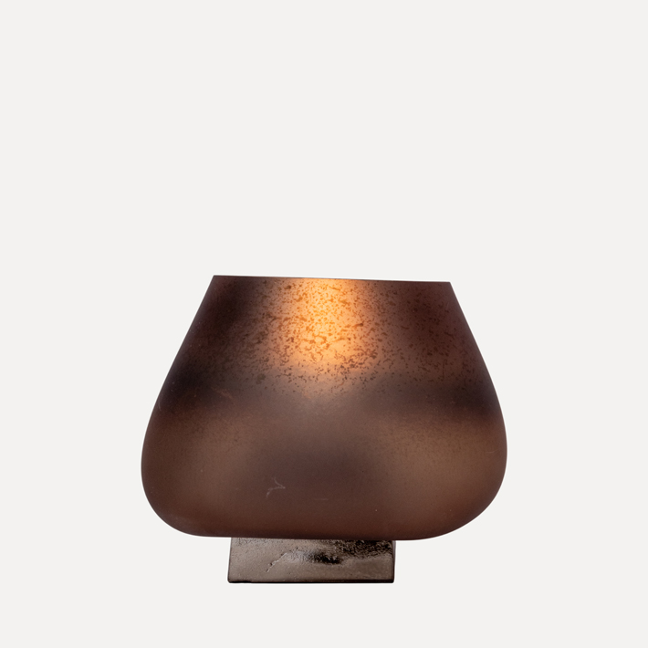 Акцентная ваза из стекла на подставке из металла в благородном бронзовом оттенке. Выразительный акцент для особенных пространств. Лимитированное изделие, созданное с вниманием к форме, текстуре и пропорциям в философии piece of art.