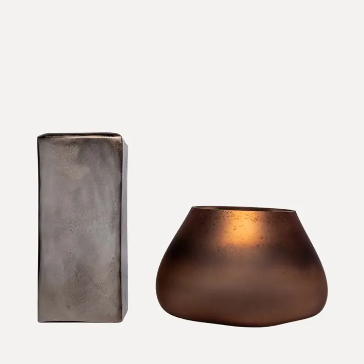 Выразительная ваза из стекла на металлической подставке для премиальных и элегантных интерьеров. Лимитированное изделие, созданное с вниманием к форме, текстуре и пропорциям в философии piece of art.