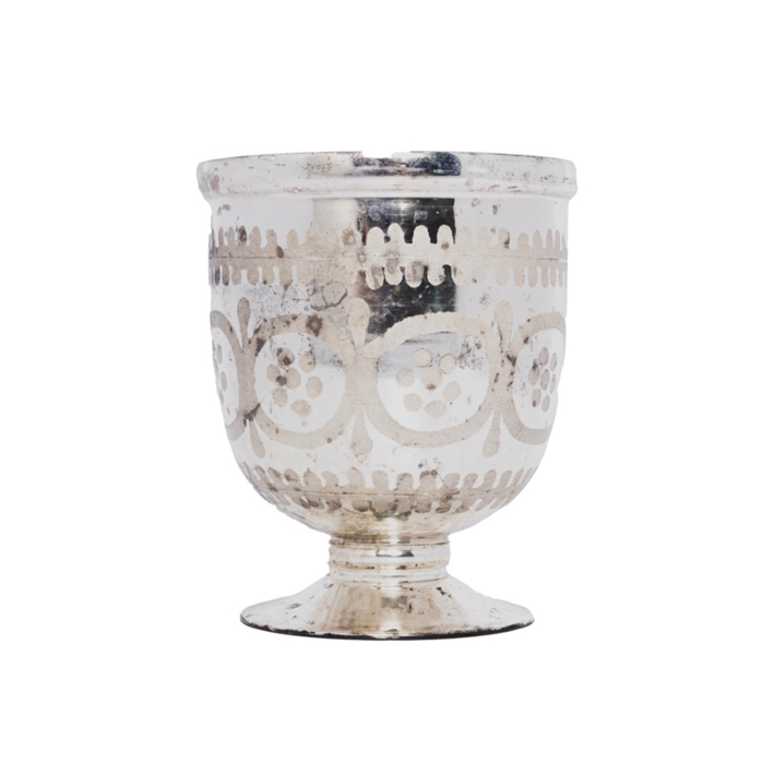Ваза с эффектом состаренного стекла и фактурным рисунком придаст романтичности оформлению. Изделие идеально для использования в качестве подсвечника с живыми и LED-свечами.