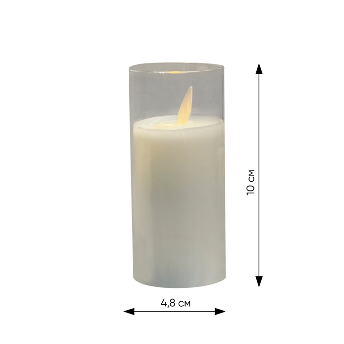 Светодиодная свеча 4,8х10 см, пластик, стекло, парафин, прозрачный