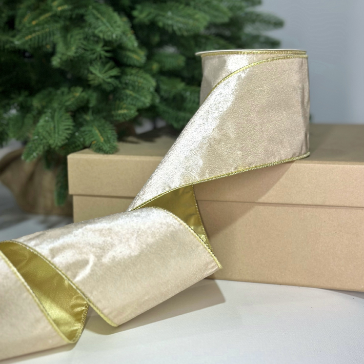 Бархатная лента, W10 см, L10 м, полиэстер, шампань