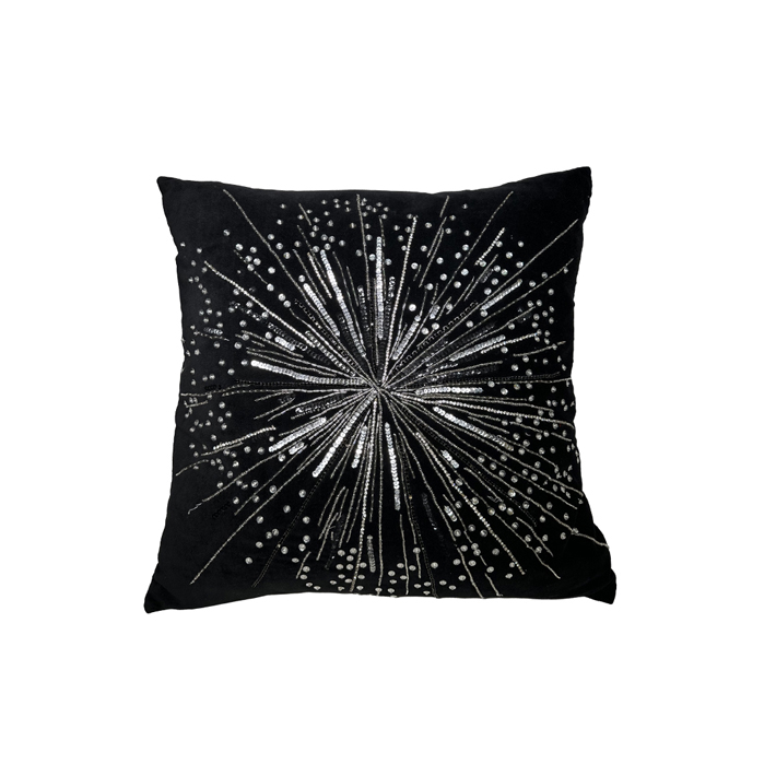 Подушка с вышивкой СОЛНЦЕ 50х50 см, текстиль, черный, серебряный