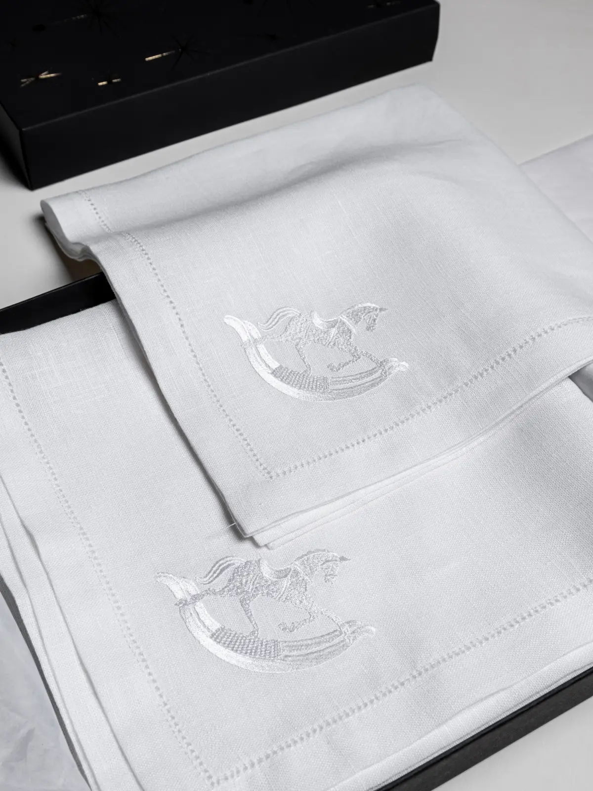 Минимальное количество наборов — 30 шт. Два праздничных мотива: "Снежинка" и "Лошадка".